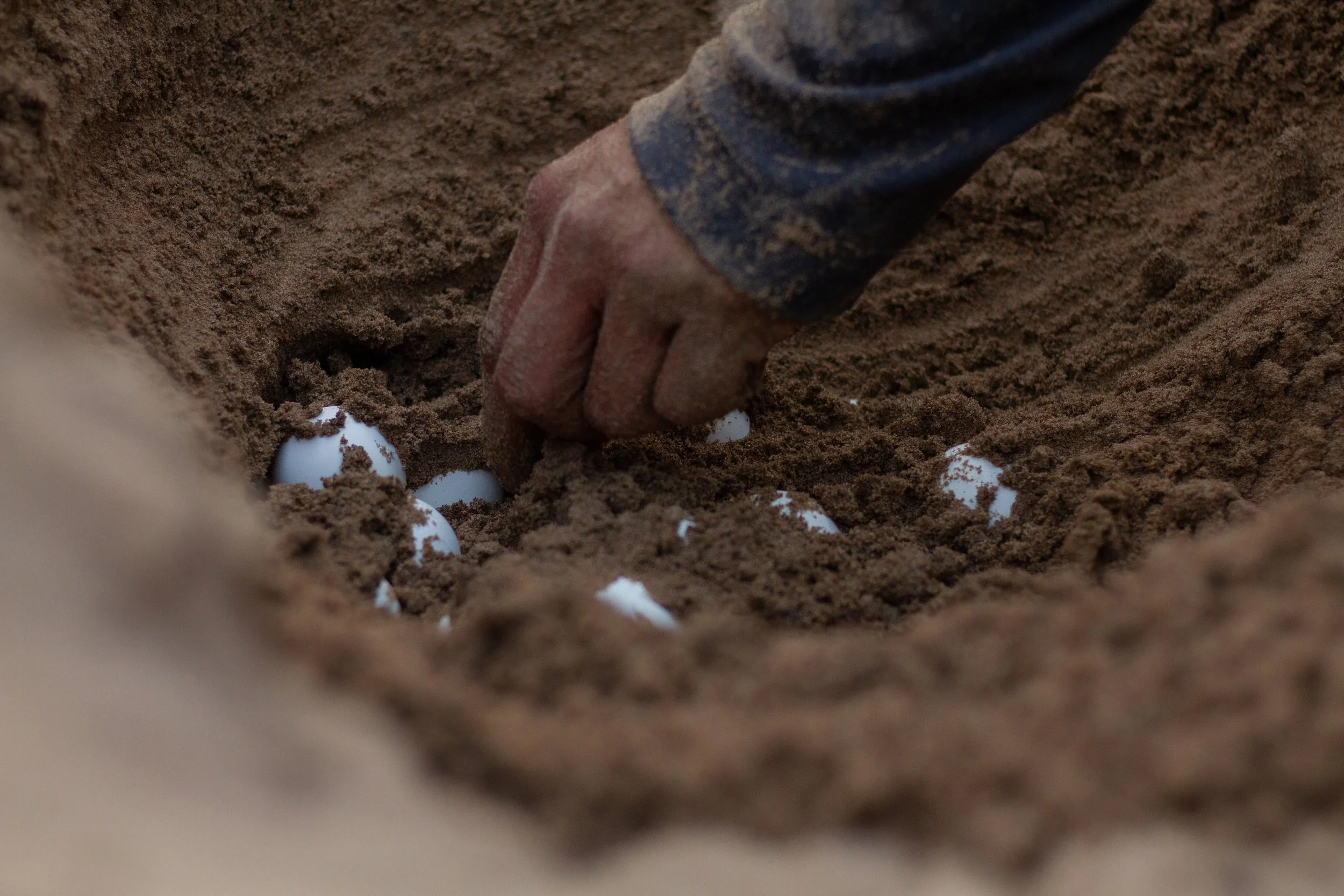 Recolección cuidadosa de huevos de charapa (Podocnemis expansa) durante el monitoreo comunitario.