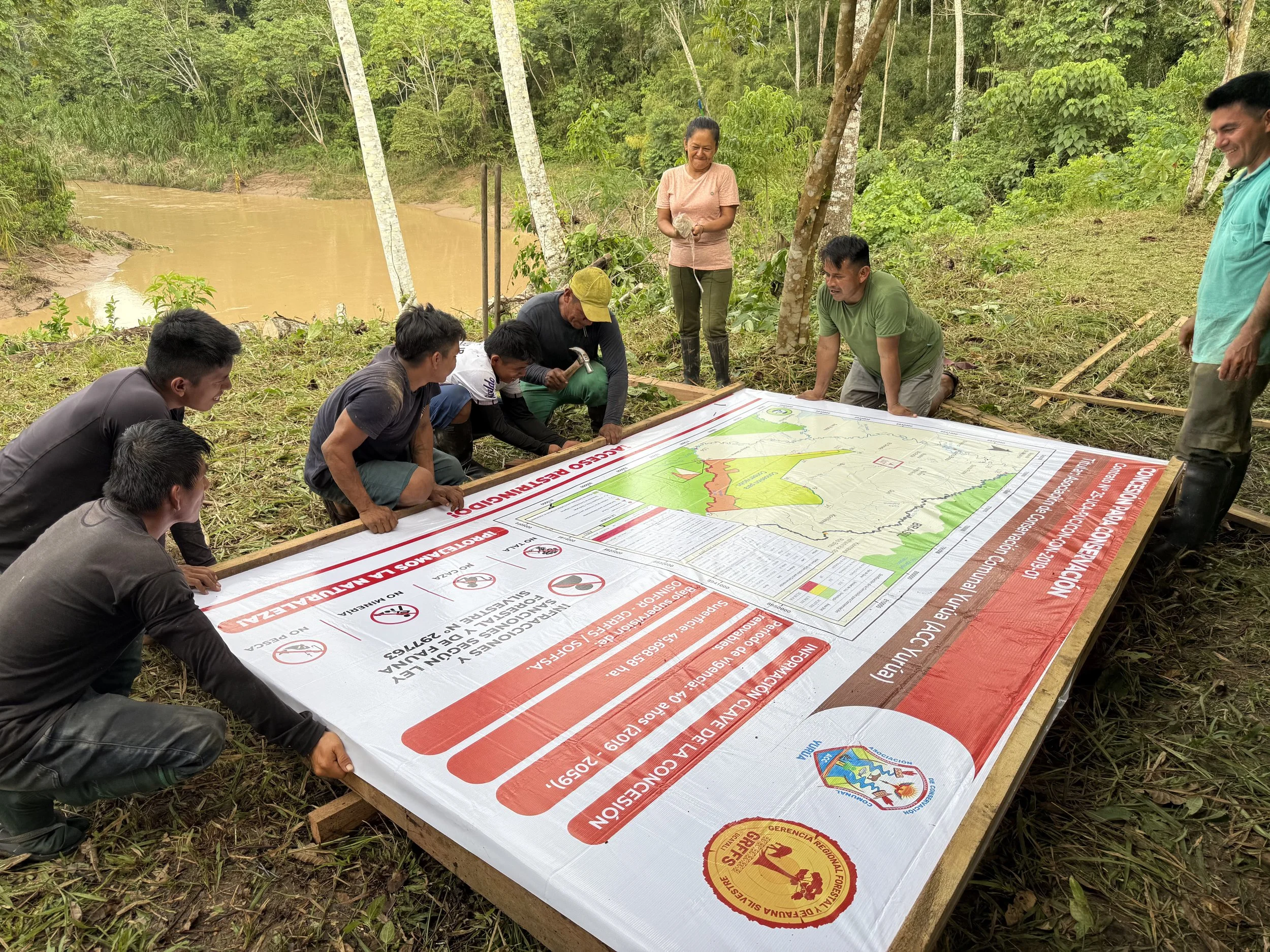 Instalación de señalética en la Concesión para Conservación en Yurúa